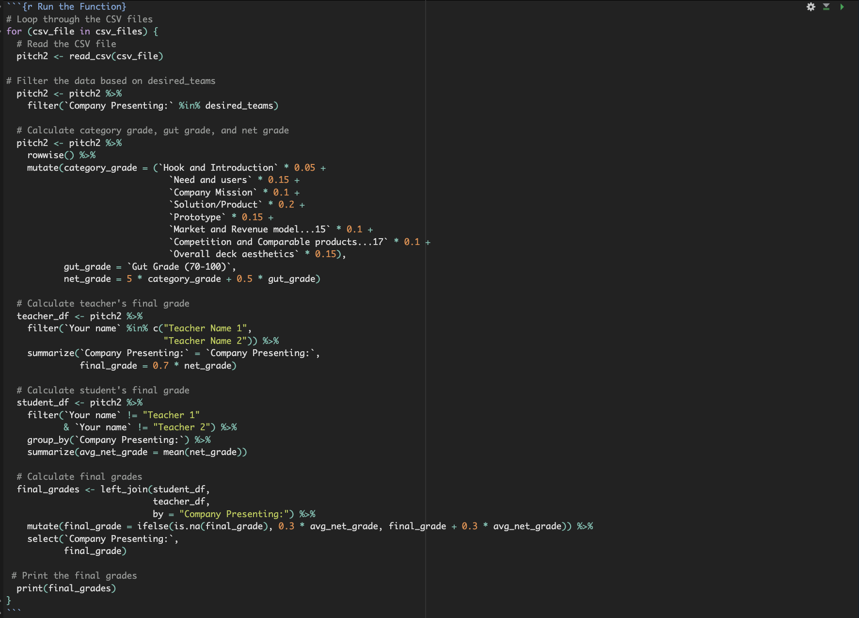 Three times a year, companies present investor pitch-decks. Teachers, guests and students grade these pitch decks with a detailed rubric but manually calculating scores for 100+ students is not efficient.